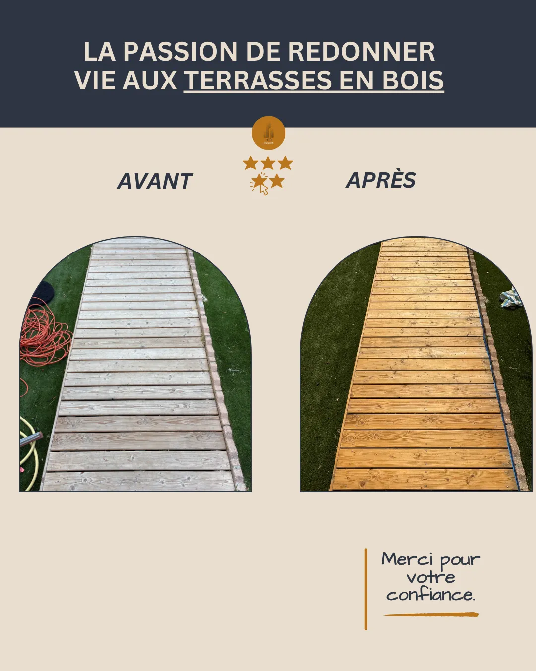 Chaque terrasse est différente. Nos interventions permettent de redonner un aspect propre, naturel et protégé au bois, avec des résultats visibles dès la fin du chantier.