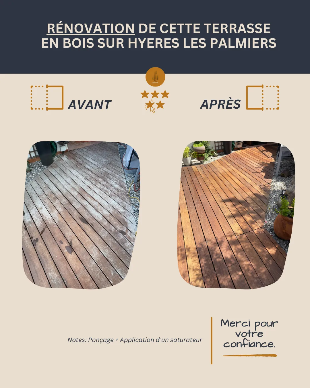Spécialiste local du nettoyage de terrasse bois, dégrisage professionnel et protection par saturateur de Sanary à Nice — Devis gratuit, résultat durable.